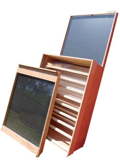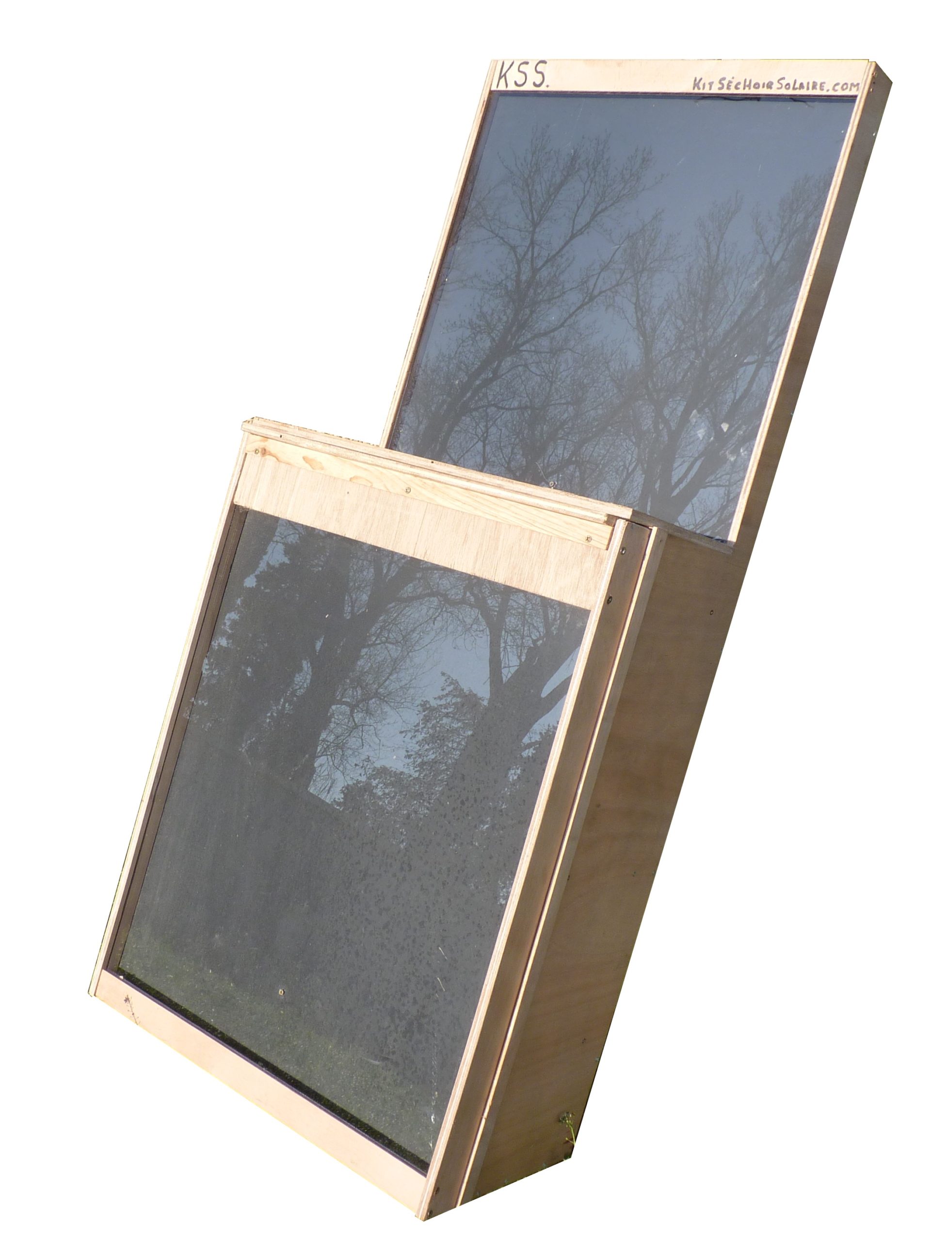 Le séchoir KSS se compose de bois, de polycarbonate (léger et incassable), et de métal (la plaque chauffante noire). Une partie séchoir et une partie cheminée qui extrait l'air chaud chargé d'humidité.